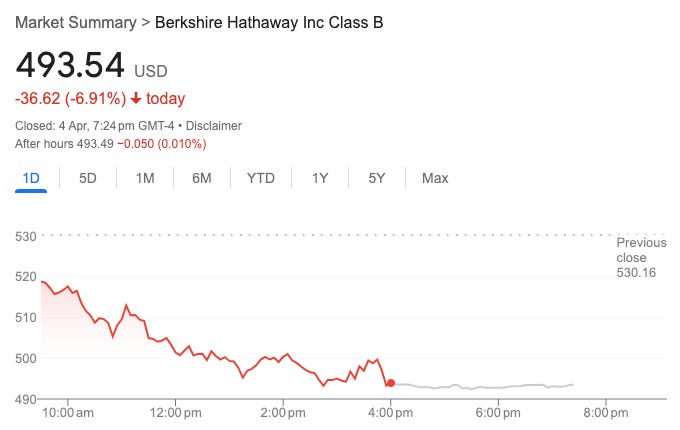 Then Friday came. Berkshire fell 6.91% in a single day.